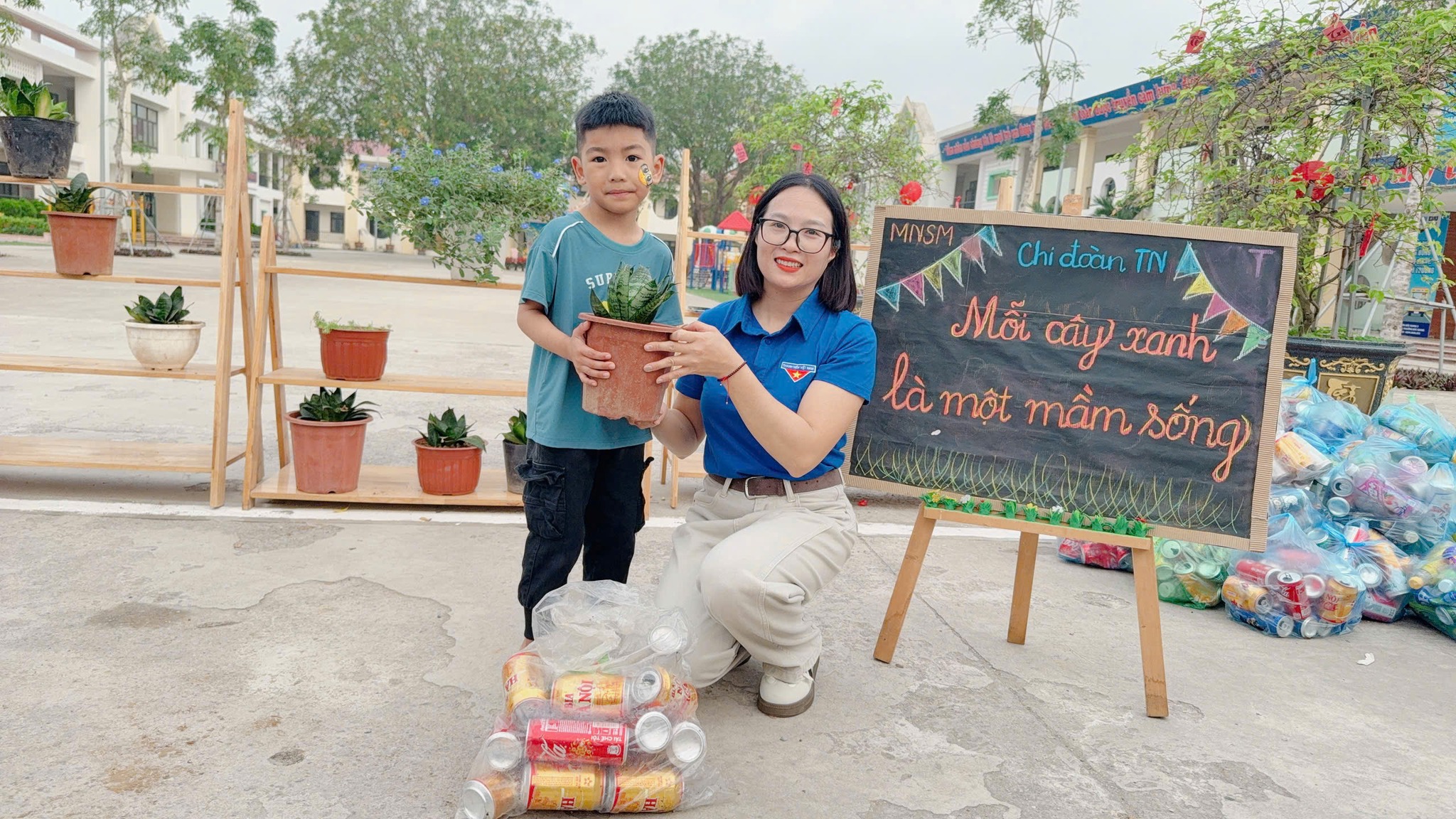 Chi đoàn trường Mầm non Song Mai tổ chức hoạt động “Đổi rác thải tái chế lấy cây xanh”