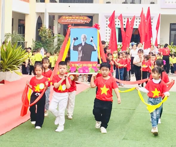 Ngay từ đầu chương trình, ngày hội đã được mở màn bằng phần diễu hành ấn tượng của các bé trong trang phục rực rỡ sắc đỏ cờ Tổ quốc, tay cầm cờ, hoa và biểu ngữ. Hình ảnh các em nhỏ tự tin, hồn nhiên sải bước trong tiếng nhạc, cùng sự cổ vũ nhiệt tình của cô giáo và phụ huynh đã tạo nên không khí trang trọng nhưng cũng rất gần gũi, thân thiện.